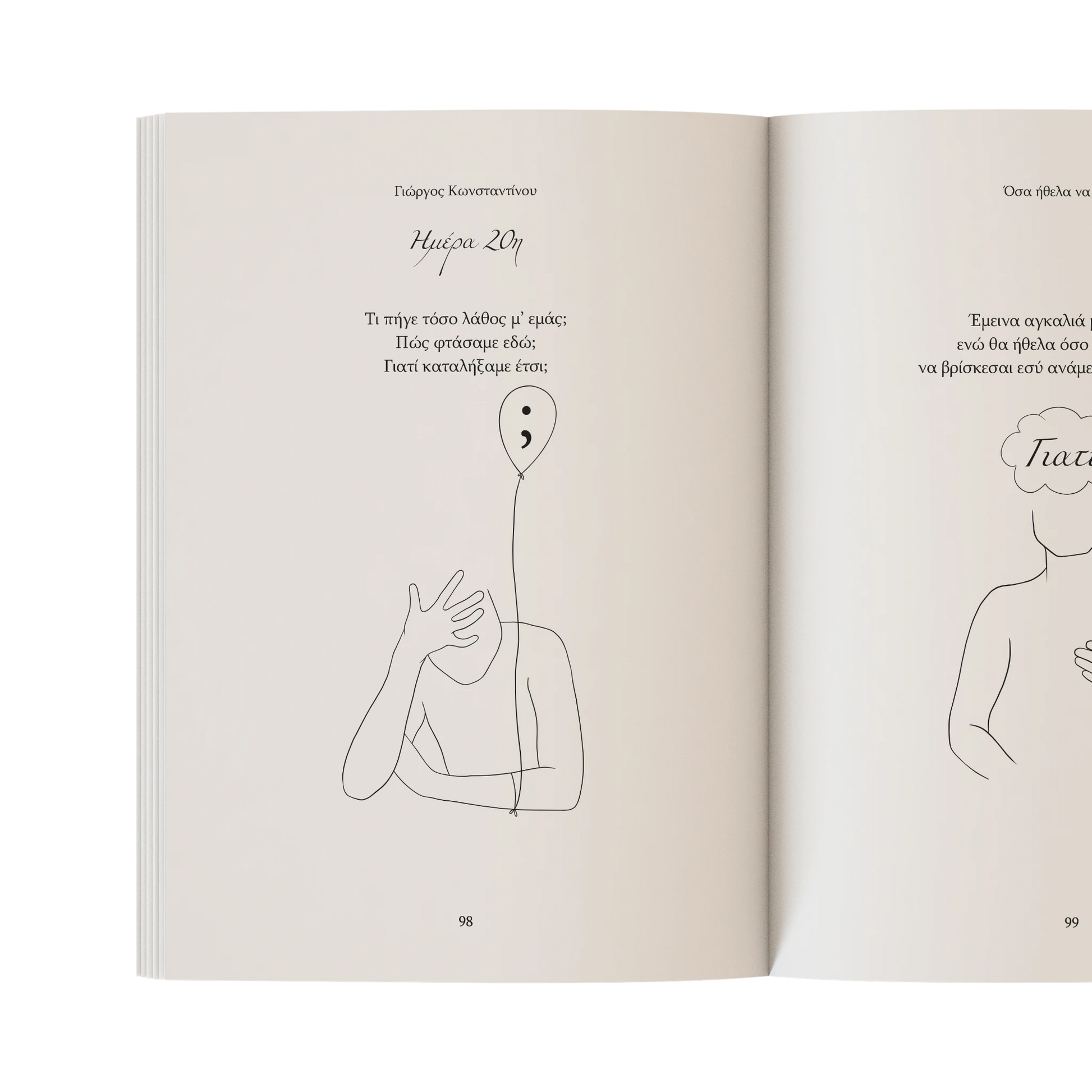 Ο Γιώργος, ο Ψυχο-Λόγος μας, για ακόμα μία φορά κατάφερε να με συγκινήσει, να με κάνει να βουτήξω βαθιά στην θάλασσα των συναισθημάτων που θέλει να μας περάσει μέσα από τα γραπτά του. Δεν χρειάζονται πολλά λόγια, μόνο να ανοίξεις το βιβλίο και να χαθείς στις λέξεις. Συγχαρητήρια!